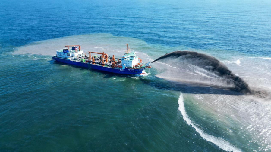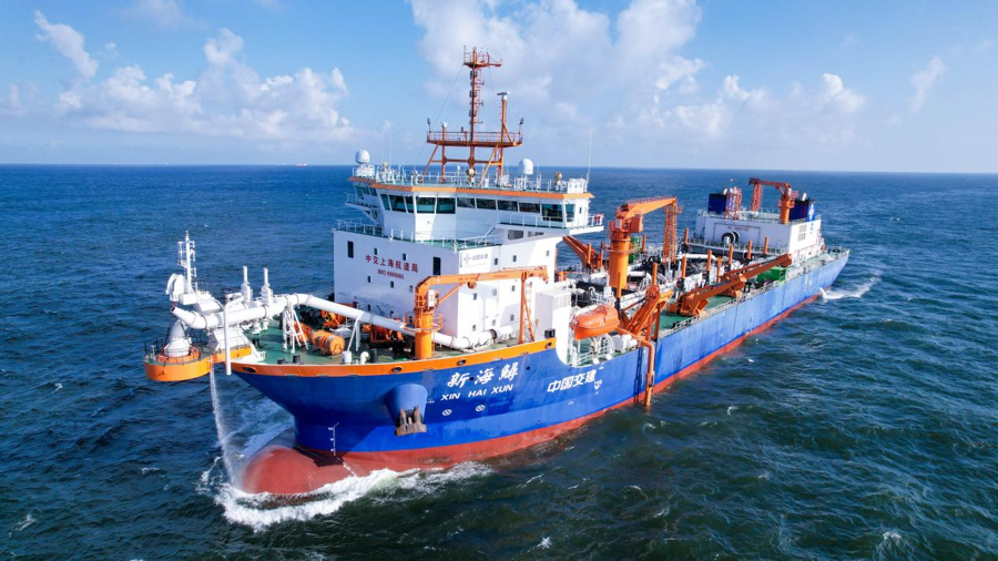 国庆中秋长假,在长江口12.5米深水航道,挖泥船“新海鲟”轮仍日夜不停地进行疏浚作业。这艘全球最大的LNG双燃料耙吸挖泥船,近日还登上中央电视台《走遍中国》栏目,展现其使命与情怀。