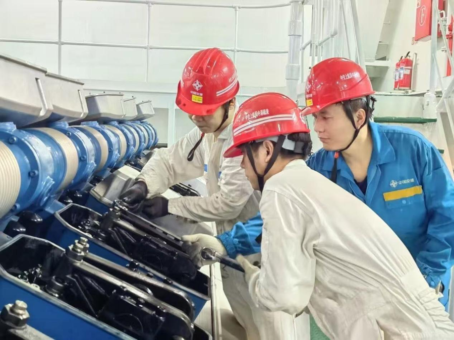 在“硬核”之下,涌动的则是工程人的柔软内核。“新海鲟”轮船员在机舱一丝不苟地把着船舶的“脉搏”、在驾驶舱铿锵有力地发着号令。他们中,有在海上漂泊半生、将青春献给疏浚事业的老船长;有精通船舶技术、为巨轮赋予“智能”的年轻工程师……在茫茫大海上,船舱是他们的家,甲板是他们的战场。