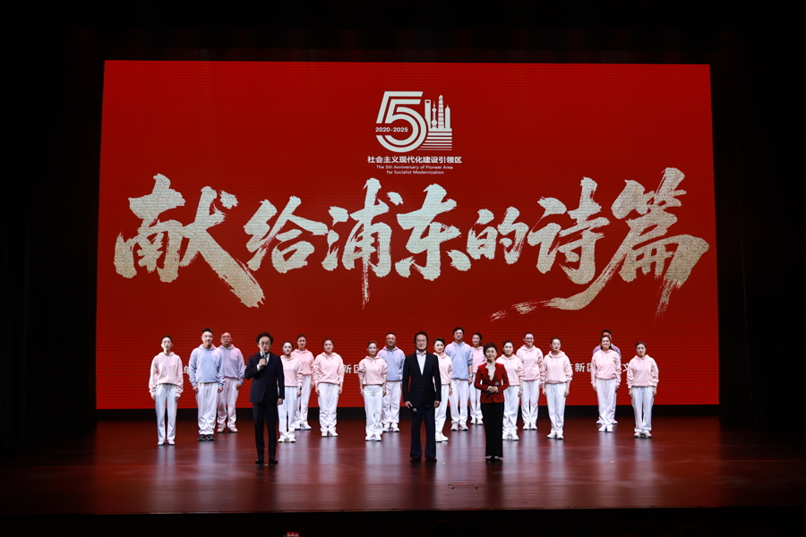 浦东职工原创朗诵剧《献给浦东的诗篇》近日首演,以朗诵为主体,与情景表演相结合,歌颂了浦东建设引领区5年以来在芯片、制药、航空航天、人工智能、数据金融等现代化产业体系中的优秀成果,生动展现浦东职工苦干实干、创新创业的奋斗历程与时代精神。