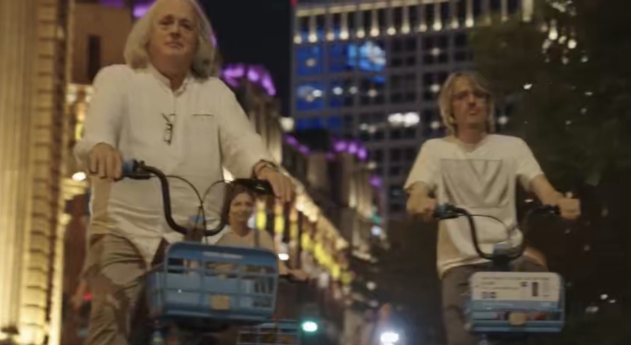 夏夜晚风中,伊拉和他的朋友们——金翅雀古乐团从四川路桥骑上了共享单车,他们双手扶着车把,车轮碾过老马路的石板纹路,清脆的声响伴着街头的人声、车声,成了最鲜活的城市配乐。他们还来到乍浦路桥眺望苏州河与黄浦江交汇的夜景,霓虹闪烁间,老建筑的沧桑与新地标的挺拔相映成趣。外滩的历史肌理与陆家嘴的现代锋芒碰撞出独特的城市气质,伊拉不禁惊叹这份跨越时空的张力:“仿佛置身未来,却又处处能触摸到历史的脉搏。”他直言期待重返四川路桥,更在漫步中定格下外滩夜景里灯光与江波交融的瞬间。